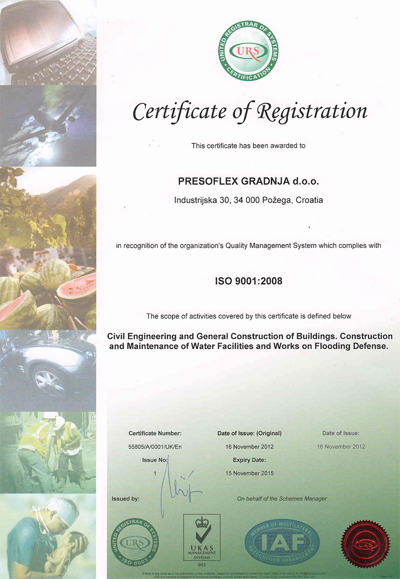 Politika upravljanja kvalitetom i okolišem poduzeća Presoflex gradnja d.o.o. sastavni je dio poslovne politike sa svrhom da kupac dobije proizvode i usluge koji u potpunosti zadovoljavaju njegove zahtjeve. Zahtjevi kupca nastoje se provesti uz što manje štetnih utjecaja na okoliš i uz neprekidno poboljšavanje djelotvornosti sustava upravljanja kvalitetom i okolišem.